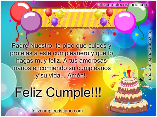 Padre Nuestro te pido que cuides y protejas a este cumpleañero y que lo hagas muy feliz. A tus amorosas manos encomiendo su cumpleaños y su vida... Amén!.