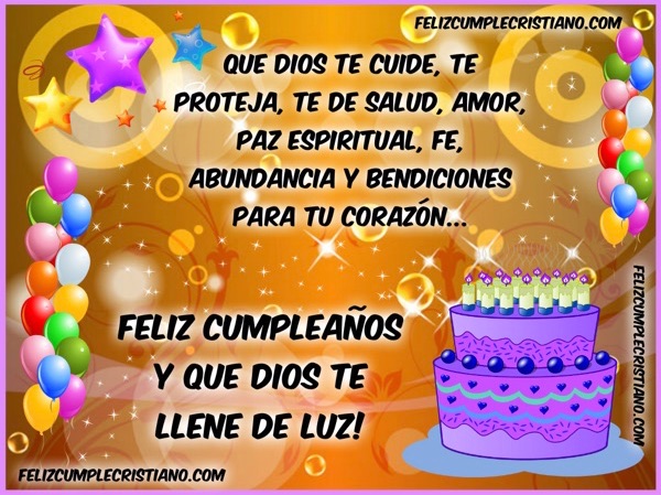 Que Dios te cuide, te proteja, te de salud, amor, paz espiritual, fe, abundancia y bendiciones para tu corazón... Feliz cumpleaños y que Dios te llene de luz!.